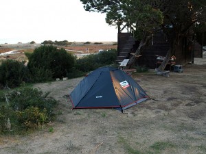 Zum Glück habe ich es noch vor Sonnenuntergang bis zum Zeltplatz geschafft. Naja, nicht wirklich Zeltplatz. Hassan hat dort mitten im Karpaz ein Restaurant und ein paar Bungalows und man darf auch sein Zelt dort aufstellen. Für mich dann letzteres. :)