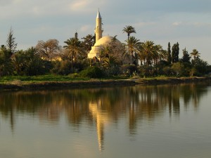 Nachdem wir mit dem Stausee fertig waren ging es weiter Richtung Larnaka Flughafen. Hier, nur wenige Kilometer vom Flughafen entfernt, steht die alte Moschee Hala Sultan Tekke. In ihr ist das Grab der Umm Haram. Der Tante des Propheten Mohammed. Sie soll im 7. Jahrhundert von einem Esel gefallen und an den Folgen des Sturzes verstorben sein.