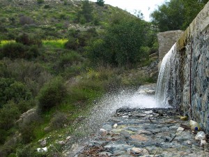 Es ist ein kleiner Stausee an dessen Ende der Höhenunterschied mit einer Steintreppe überbrückt wurde. Nun ist der Stausee voll und das Wasser plätschert die „Treppe“ herunter. Der Stausee ist gar nicht auf meiner Karte. Aber es müsste nahe Alethriko sein.
