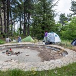 Sie haben ihr Zelt zwischen 2 größeren Büschen aufgeschlagen, damit es wenigstens Windgeschützt ist.