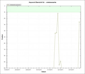 Nachdem ich am Anfang ganz gut eingestiegen bin (auf Platz 3), hat mich Google dann auch recht schnell rausgeschmissen. Warum, wieso, weshalb… das erfährt man dann ja nie. Aber ich dachte mir das ich es wohl mit der Keyword-Density etwas übertrieben hatte. Obwohl es eigentlich ok war. Sie lag bei etwas über 4%. Nunja, wie dem auch sei. Ich habe den Artikel noch einmal überarbeitet und ein paar „OnkelSeosErbe“ rausgeschmissen, wodurch der Text leider auch ein wenig an Sinn verlor.