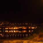 We packed our stuff quickly, said Good Bye again to our friends and went further. Further to the next Mc Donalds, which was in the next city. Which we saw on the other side of the river already in the night.