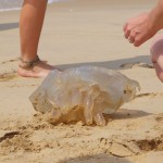 In the morning was it better. We had a look to the beach, first of all. A huge nice beach with wonderful sand. The kite-surfer was on the water already. We saw on the beach even a whole school class with surfboards. Little Portuguese with small surfboards. :) The ocean itself didn’t look very inviting. It was dirty (from the sand or sediments) and the waves were heavy. We decided not to go in. Who knows how the current is.